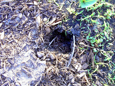 Well, now to the untrained eye, this might look like a hole in the ground. But it's not. It's a deer track. It's about 6 inches away from my corn that is three inches high. It gets better.